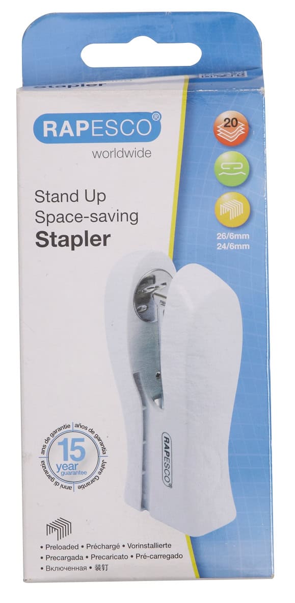 Rapesco White Stand Up Stapler 26/6mm Hang Pack